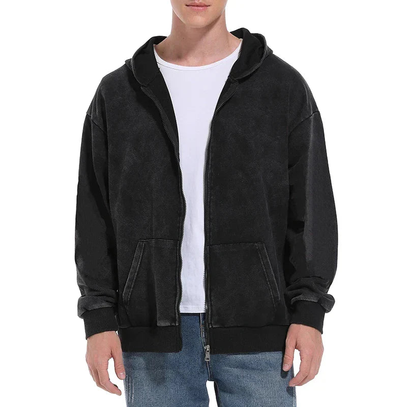 Men's Washed Zipper Hoodie